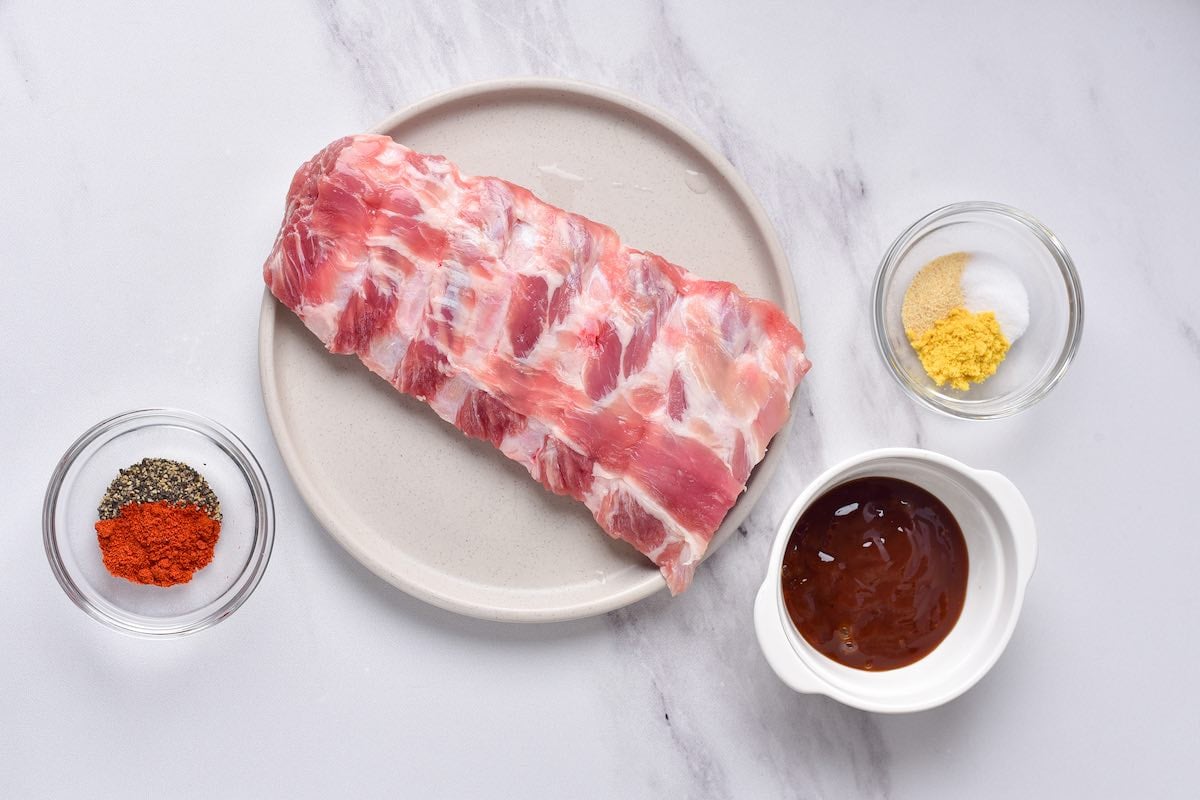 • Pork baby back ribs. These are specific rib cuts from the upper rib racks of pork and include riblets, loin ribs, and back ribs. I prefer to get my ribs from the butcher over a mainstream grocery store because most of the bone is still intact (which is essential for all the flavor!).