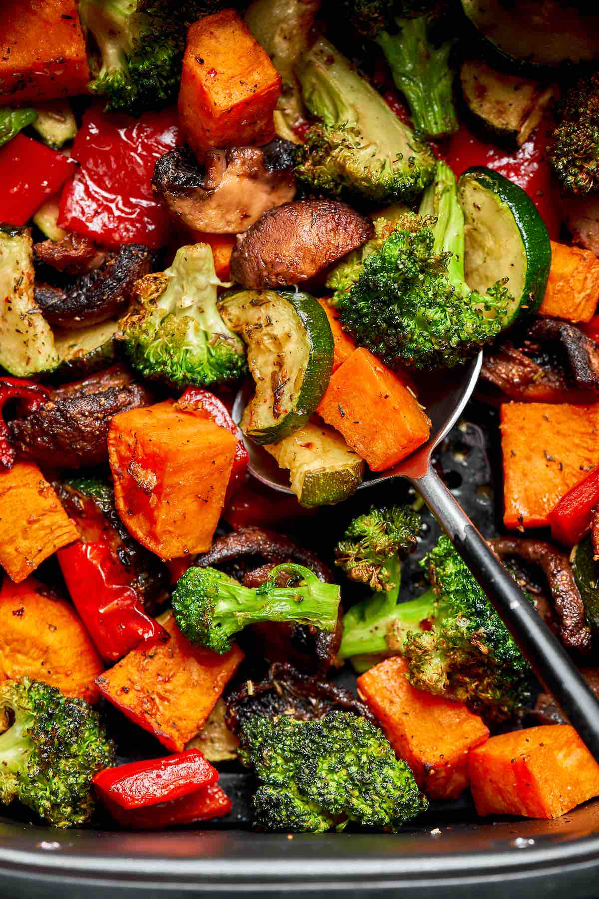 - Remove the vegetables from the air fryer basket and serve immediately.