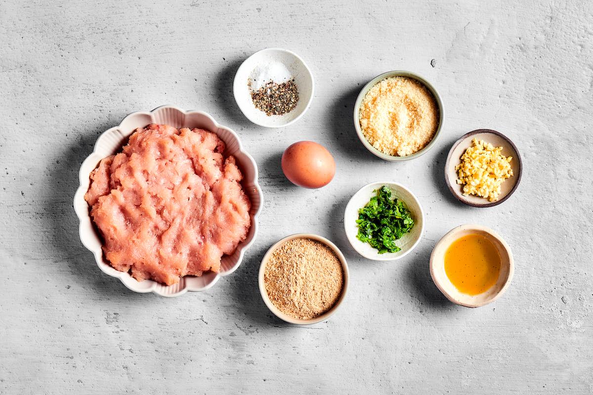 - In a mixing bowl, combine ground chicken, egg, milk, garlic, Italian seasoning, garlic powder, salt, and pepper. Mix everything gently until just combined.