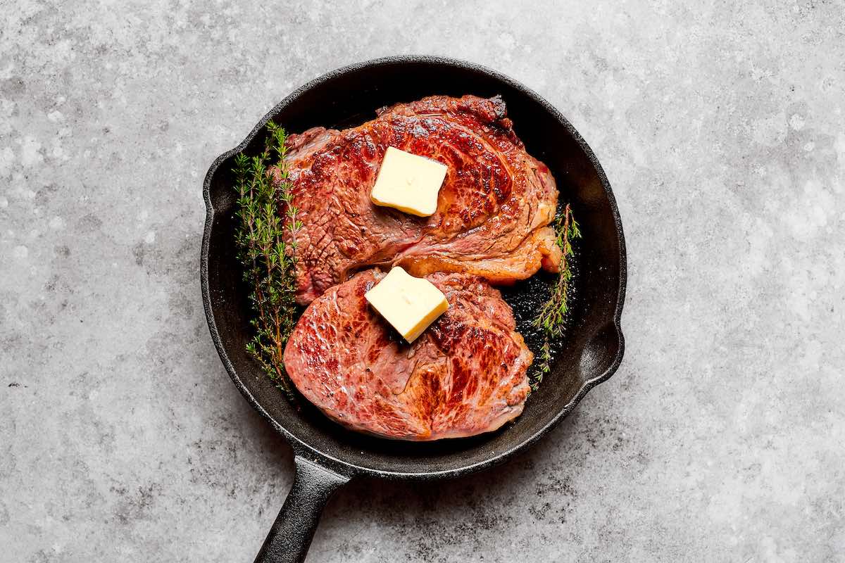 - Pan sauce. Remove the steaks from the skillet with tongs, then add the butter and let it melt. Once the butter has melted, drizzle it over the steaks before serving.