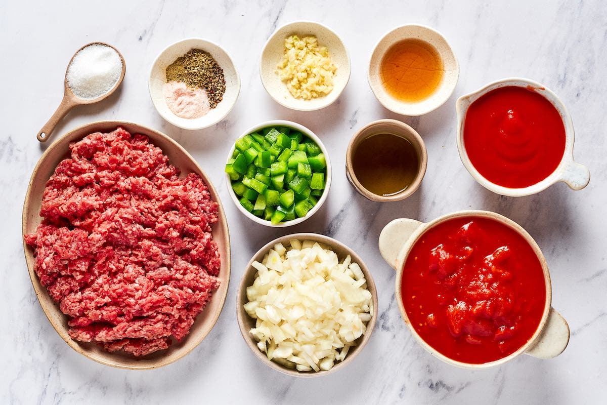 - Ground beef. I prefer lean ground beef because it’s lower in fat and higher in protein, but any ground beef works. If you choose a higher-fat one, simmer the mixture for an extra 3-4 minutes to reduce the excess liquid.